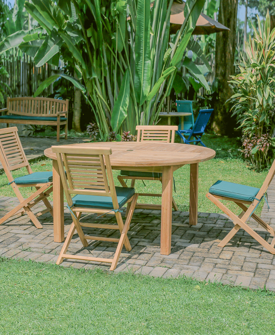 Teak Doncaster 6 Seater Round 1.5m with Belgrave Stacking Chairs/Hanton Chairs & Hanton Arm Chairs (Garden / Outdoor Dining Set)